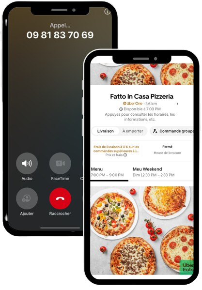 Vous pouvez commander par telephone au ou directement par l'application Uber Eat: Fatto In Casa